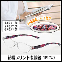 オシャレなフラワーデザイン☆新しいタイプの老眼鏡がデビュー!【ポイント10倍:9/24(木)09:59まで】花柄プリント老眼鏡 TP1740 +1.00価格: 4,725円レビュー評価: 0.0 レビュー数:0 普通の老眼鏡には抵抗があってちょっと・・・という方にもピッタリ!オリジナルの美しいフラワーデザインを、1本1本プリントしたオシャレな老眼鏡&専用ケース☆割れにくくて丈夫です。サイズ個装サイズ:約180×62mm重量個装重量:約36.5?39.5g(度数によって変わります)素材・材質メガネレンズ・メガネテンプル・専用ケース:プラスチック(ポリカーボネイト)付属品専用ケース製造国台湾オシャレなフラワーデザイン☆新しいタイプの老眼鏡がデビュー! ------ ココがポイント! ------ ●普通の老眼鏡には抵抗があってちょっと・・・という方にもピッタリ! ●老眼鏡なのに、デザイン性抜群でとってもオ |