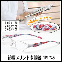 オシャレなフラワーデザイン☆新しいタイプの老眼鏡がデビュー!【ポイント10倍:9/24(木)09:59まで】花柄プリント老眼鏡 TP1745 +1.00価格: 4,725円レビュー評価: 0.0 レビュー数:0 普通の老眼鏡には抵抗があってちょっと・・・という方にもピッタリ!オリジナルの美しいフラワーデザインを、1本1本プリントしたオシャレな老眼鏡&専用ケース☆割れにくくて丈夫です。サイズ個装サイズ:約180×62mm重量個装重量:約36.5?39.5g(度数によって変わります)素材・材質メガネレンズ・メガネテンプル・専用ケース:プラスチック(ポリカーボネイト)付属品専用ケース製造国台湾オシャレなフラワーデザイン☆新しいタイプの老眼鏡がデビュー! ------ ココがポイント! ------ ●普通の老眼鏡には抵抗があってちょっと・・・という方にもピッタリ! ●老眼鏡なのに、デザイン性抜群でとってもオ |